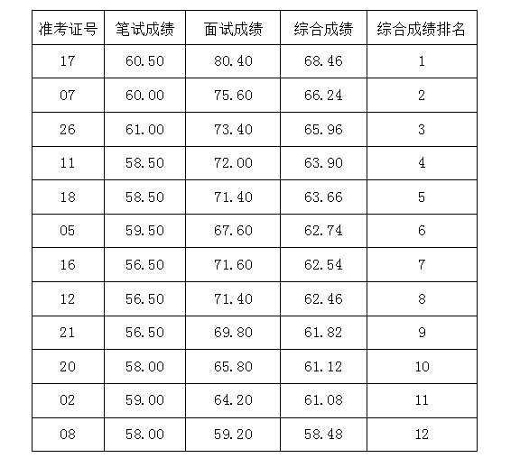 綜合成績排名前四的應聘人員將進入考察程序。