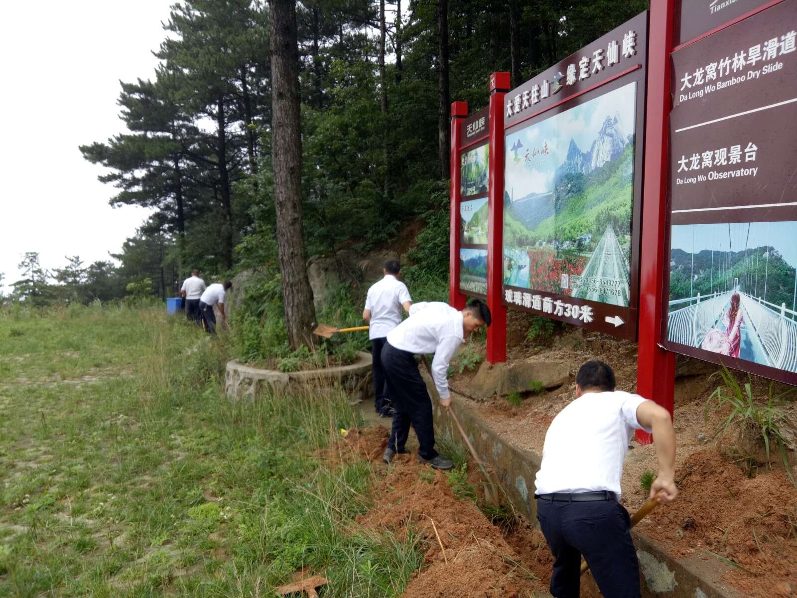 ? ??進入汛期以來,按照風景區(qū)黨委的統(tǒng)一部署,主峰景區(qū)支部統(tǒng)籌安排,積極推進,認真落實景區(qū)防汛各項工作,7月14日,結(jié)合支部“黨員活動日”,主峰景區(qū)支部組織黨員對大龍窩景區(qū)周邊附屬設(shè)施、停車場、旅游公路等多處排水溝進行了清理維護,徹底清除了排水溝內(nèi)的淤泥、雜草等,有效改善了汛期排澇功能,及時消除安全隱患,進一步確保了汛期景區(qū)旅游安全。
