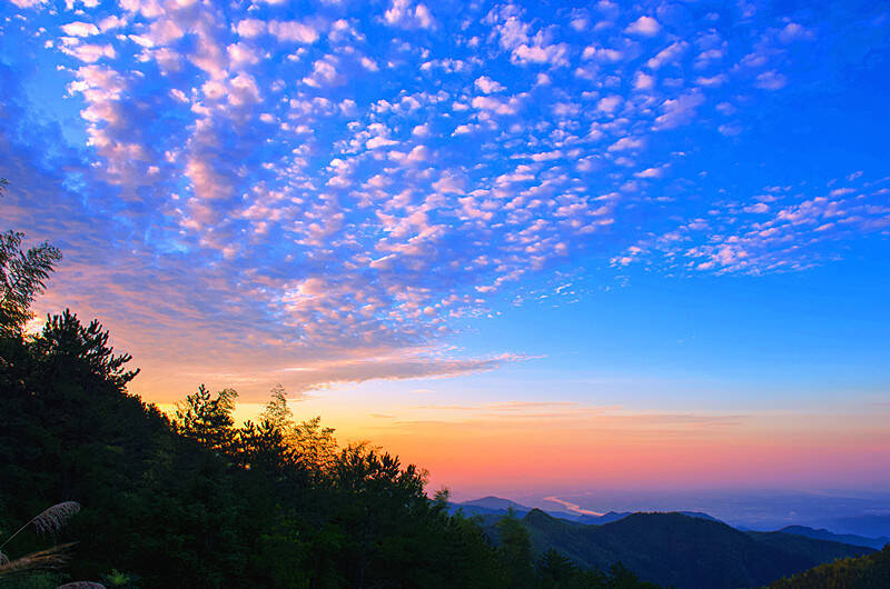 夏天的日出、晚霞最為驚艷,群峰與煙云都披上美麗的霞光,濃烈的色彩,將天地間染成了巨大的水彩畫。
