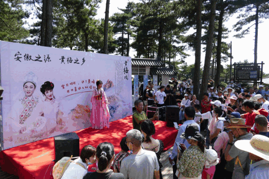 在游客服務中心及大龍窩索道上站廣場,多場黃梅戲連臺演出,臺上演員與臺下游客頻繁互動,婉轉悠揚的黃梅鄉(xiāng)音在山谷間蕩漾,廣大游客沉醉其中,真切感受到了“樹上的鳥兒成雙對,綠水青山帶笑顏”的意韻。