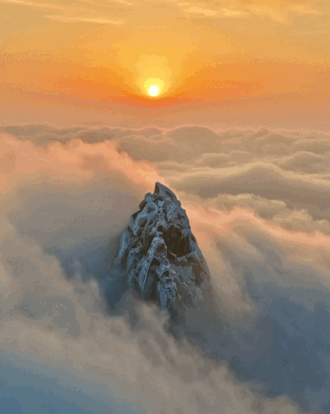 2026年1月1日17時(shí),雪后的天柱山迎來“日照金山”美景 ? ?楊賢林/ 攝
