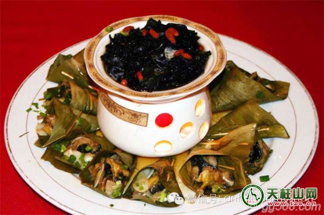 特色: 石耳燉老鱉 特點:湯清、味鮮香、鱉酥爛,具有清涼驅(qū)火之功效。天柱農(nóng)家臘肉 農(nóng)家臘味——柴火蒸臘肉(當?shù)剞r(nóng)人自養(yǎng)的黑公豬肉)